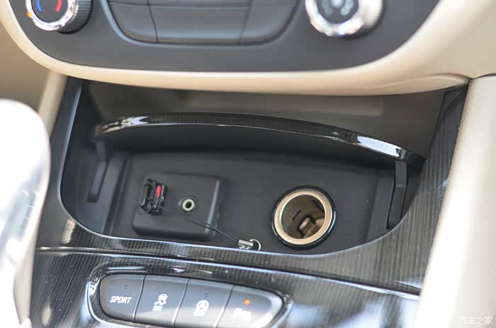 可开关的盖板下方是点烟器和USB接口,这种设计给威朗增加了豪华感。
