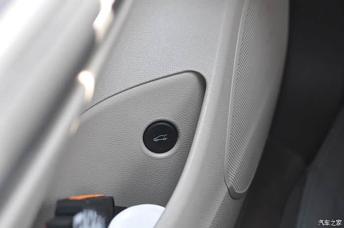 后备厢开关隐藏在了主驾驶位车门储物槽内,有明显的标志。