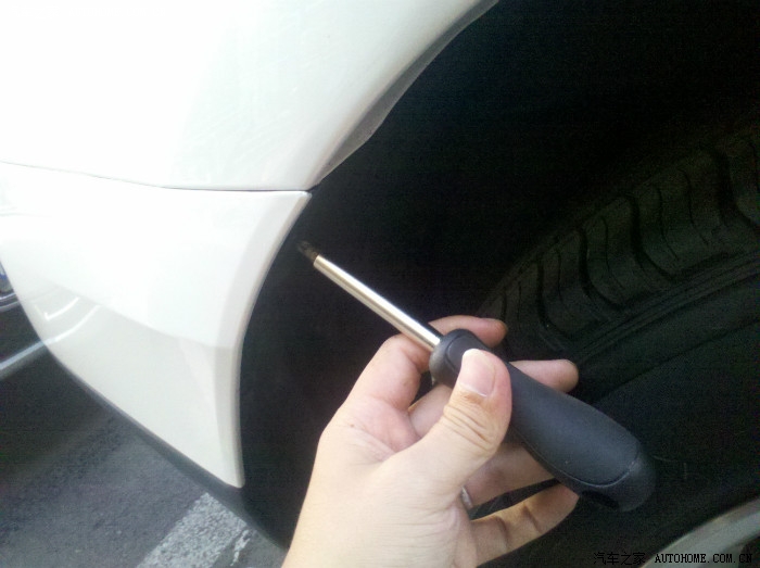 修理方法很简单,螺丝刀一把,图上的位置有一个叶子板的螺丝,只卸掉这一个螺丝就可以。