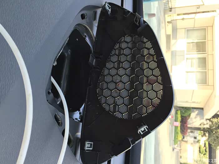 拆开中控预留面板,从网罩中间开拆,注意看图的卡扣!