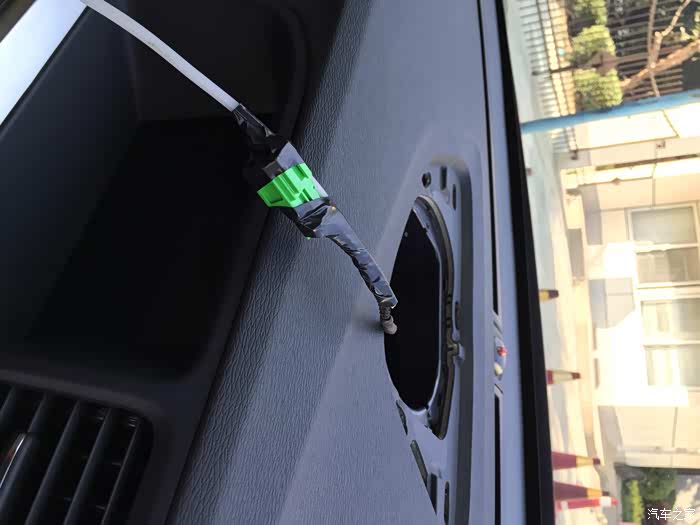 用穿线管从预留孔直接穿到副驾侧面,眼睛从副驾侧面看上来能看到是通的!