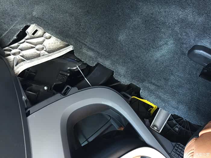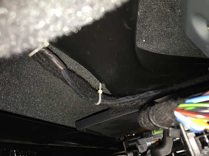 穿线管从副驾驶座位下原车线束走向穿出来再把线束带过去!