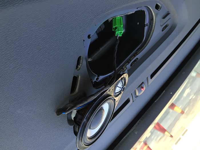 原车没中置喇叭的车,原功放根本没中置音频输出,只有四路输出分别供四个车门的喇叭!如后期加装中置只能选其中一路并联接上也就能发音了,但被并的这路音量必须在音频设置里加大音量即功率不然被接这路音量就会变小!接下来讲重点如何接线,可能会引起有些人不满,但能造福车友又不违规就发了,副驾驶座下面有一个四方的铁盒子就是功放,把三颗螺丝一拆就可以拿出来了,小心后面的线束别硬拉,功放拿出来后把那最大的绿色插头拔下来(一捏一拔),然后端口靠车身外侧四组线随便接一组(上下为一组,上面为正极,下面为负极靠地板侧),可以把线用焊锡焊上大头针然后插入原车插头,无损改装不破线,有问题一拔就恢复原厂!手机发的,大家支持下!中置喇叭拿到好久了,今天才有空就把它装上车了,效果还是不错的,装上后感觉音乐是歌手站在你面前喝歌一样,但个人觉得不值去花几千加装!我只花了很少的钱,货是找4S修理工要的,线束也是自已加工的!固定是用3M胶感觉比上螺丝好!安装是不需要拆中控的,只需拆开预留孔面板和副驶侧板就可以了;下面上图有想问的跟贴或私信!
