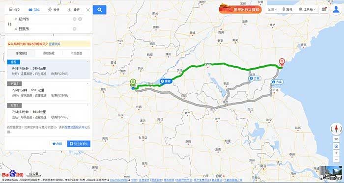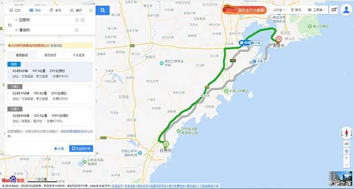 这张图片是2018年国庆节期间出游青岛和日照的地图