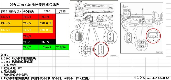 国产迈腾1.8T、2.0T的车多少都有点烧机油,对用户而言就是常检查机油油位,检查油位到现在都没有一个权威的说法,有说冷车检查,有说热车检查,怎么检查不是我想说的,我想说的意思是给用户频添了检查机油的工作量。而原车在设计时是有油位传感器的,在09年1月前是选装,09年1月份取消了这个选装。(迈腾09年电路图上有说明)。
