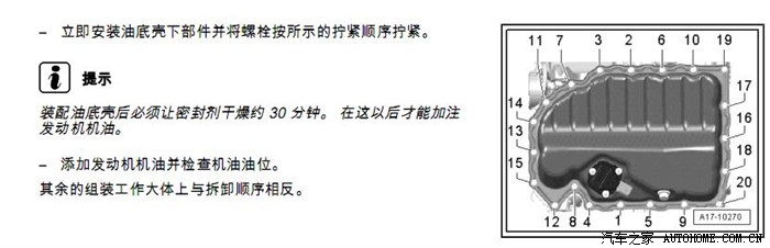 油底壳的分解于安装 看图: