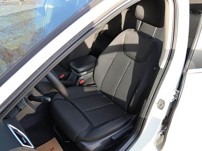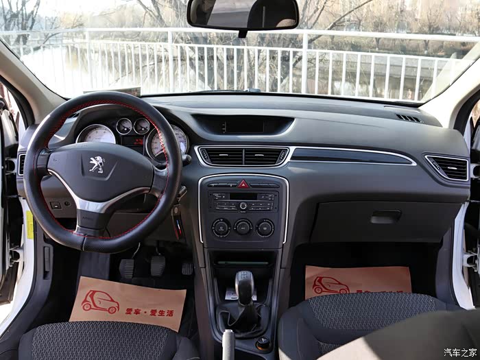 低配老款308的座椅虽然不是真皮的,但是它的织物座椅质感也不错,中间部位的纹路多多少少有点精致。
