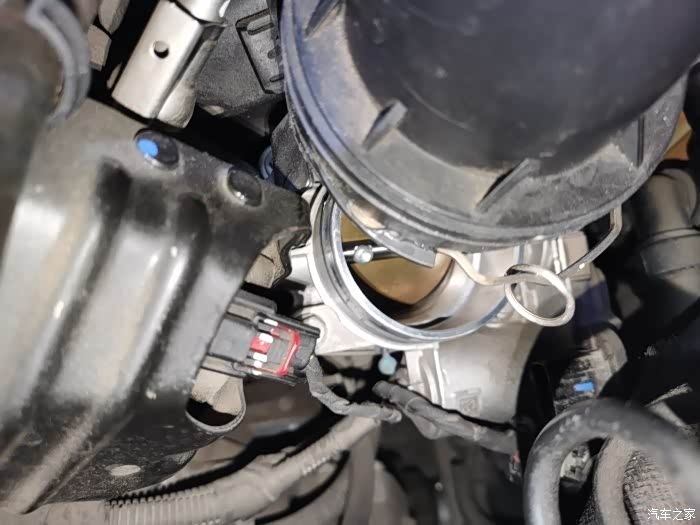 ,搞到空滤的那个管子下了(发动机仓打开后左下角那块),结果发现不对,不过拆都拆开了,就用抹布擦了擦,好黑。。。到现在都不知道那块是干哈的,知道的车友可以指点下。。3.节气门位置