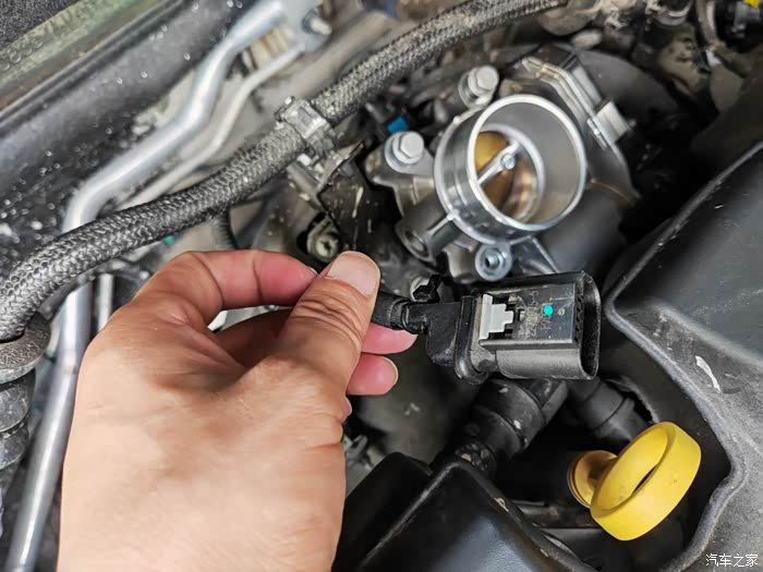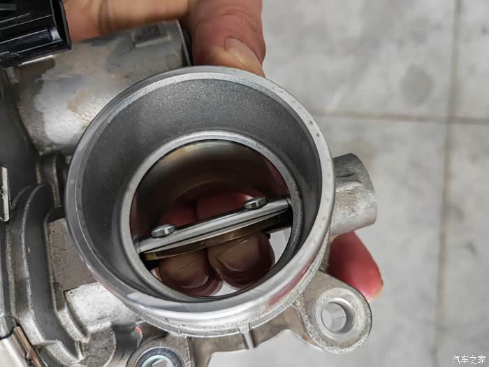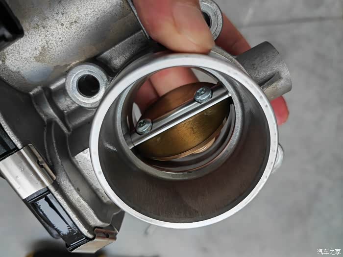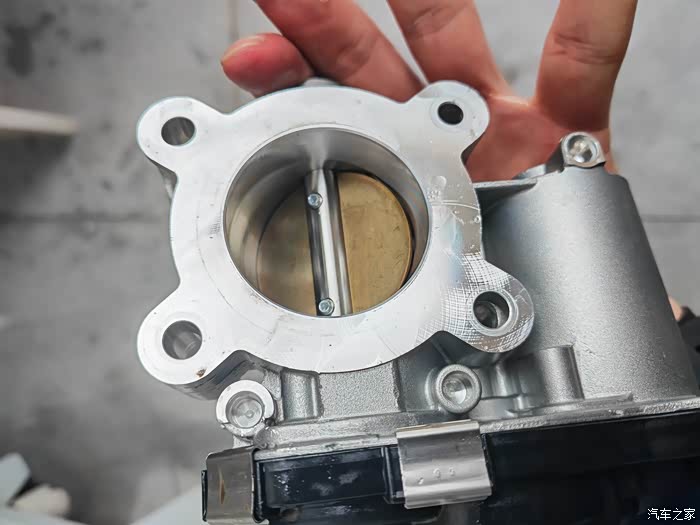 移开进气管就可以看到节气阀了,四颗螺丝卸下来,拔掉下方插头,就可以拿下来节气阀了