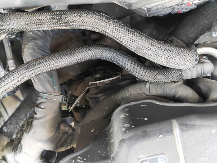 ,搞到空滤的那个管子下了(发动机仓打开后左下角那块),结果发现不对,不过拆都拆开了,就用抹布擦了擦,好黑。。。到现在都不知道那块是干哈的,知道的车友可以指点下。。