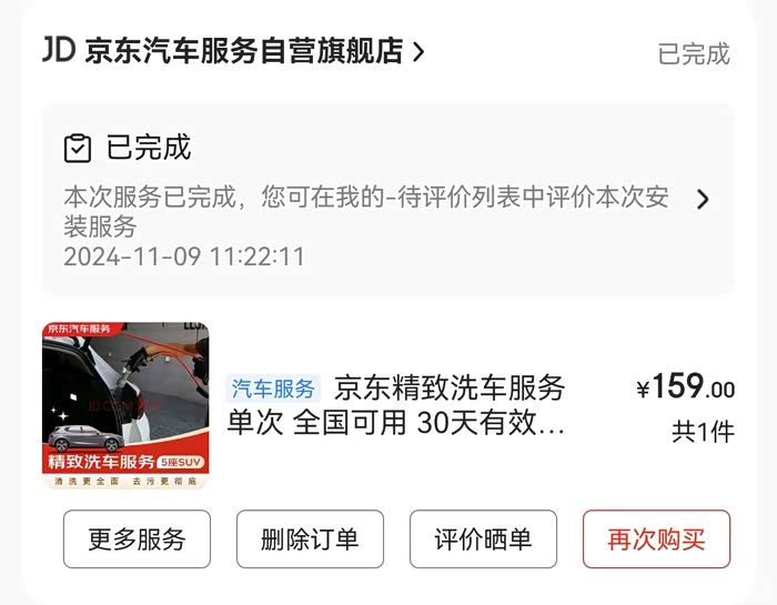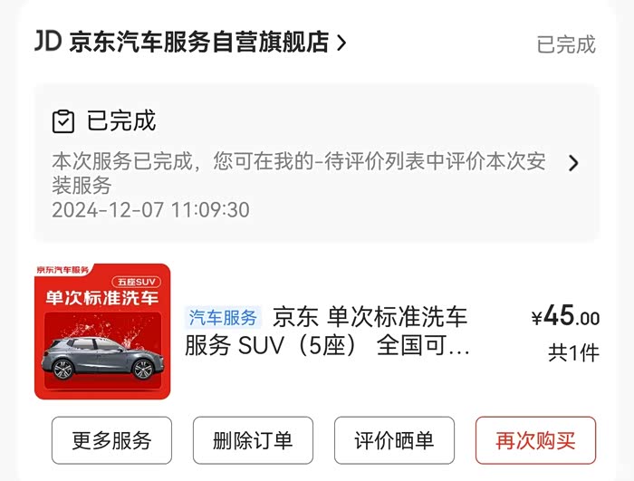 洗车方面,我有三种洗车方式:自助洗车,平均每次6元,每两周1次,全年充值了200元性价比很高;平时每1.5个月进行京东普洗,单次50元,全年500元;每半年我会在外面做一次精洗,精洗每次150元,一年做2次,全年300元;洗车全年共计花费约1000元。
