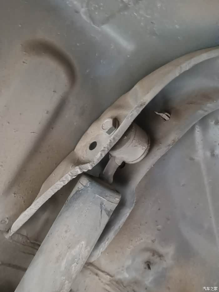 看见没,要爬车底下去(注意安全把拆下来的轮胎垫在车身下),大臂有个通孔是个梅花螺丝,要用专用套筒型号是E16