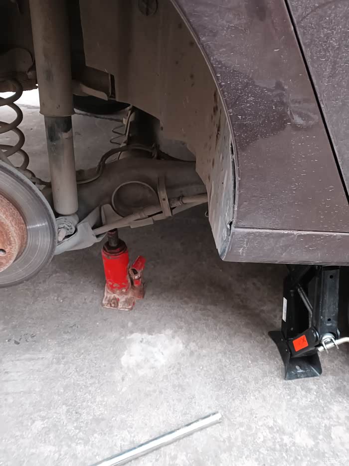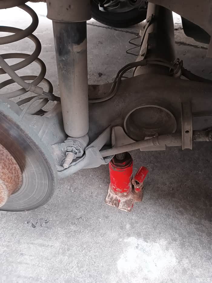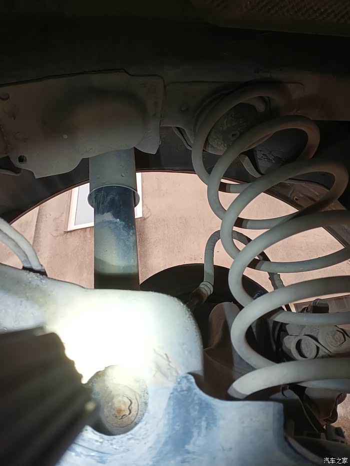 先装减震上螺栓,下螺栓对孔可以找个和螺栓差不多粗细的铁棍代替捅进去,螺孔位置上下不对别费力拉减震,直接通过千斤顶调节省力(别问我怎么知道的)