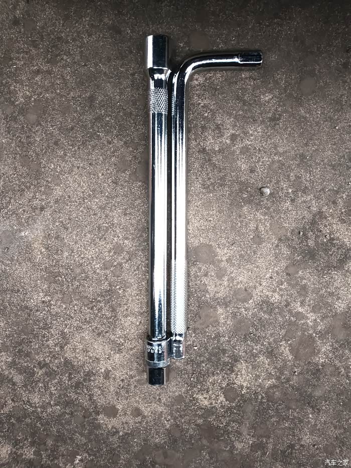 因为大臂很粗要穿过大臂拧,所以要加长杆,在车下不好使力,用弯杆加力轻松一点(因为减震下固定螺栓露出很多,所以要转很久,免得爬进爬出多次)