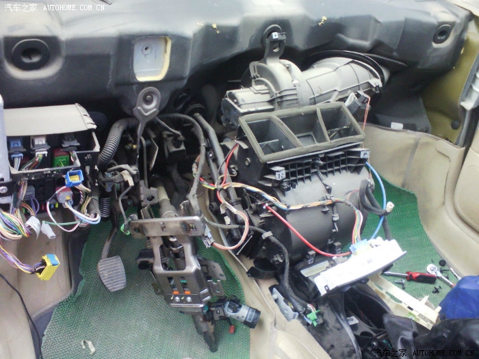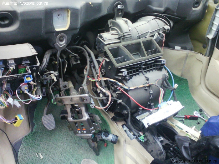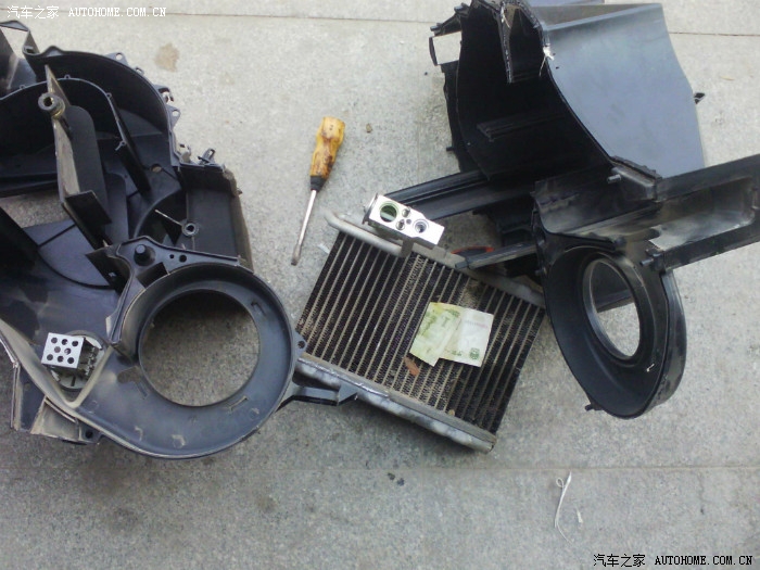 近一个多月遇到空调蒸发器漏弗的就4个车,都是4年左右的。如何判断是空调蒸发器漏弗实际不难,注意一下空调出风口吹出来的风的气味就能判断,这个车主描述说像敌敌畏的味道,城里人应该不知道敌敌畏是什么气味吧 。不说了 上图 做好防护
