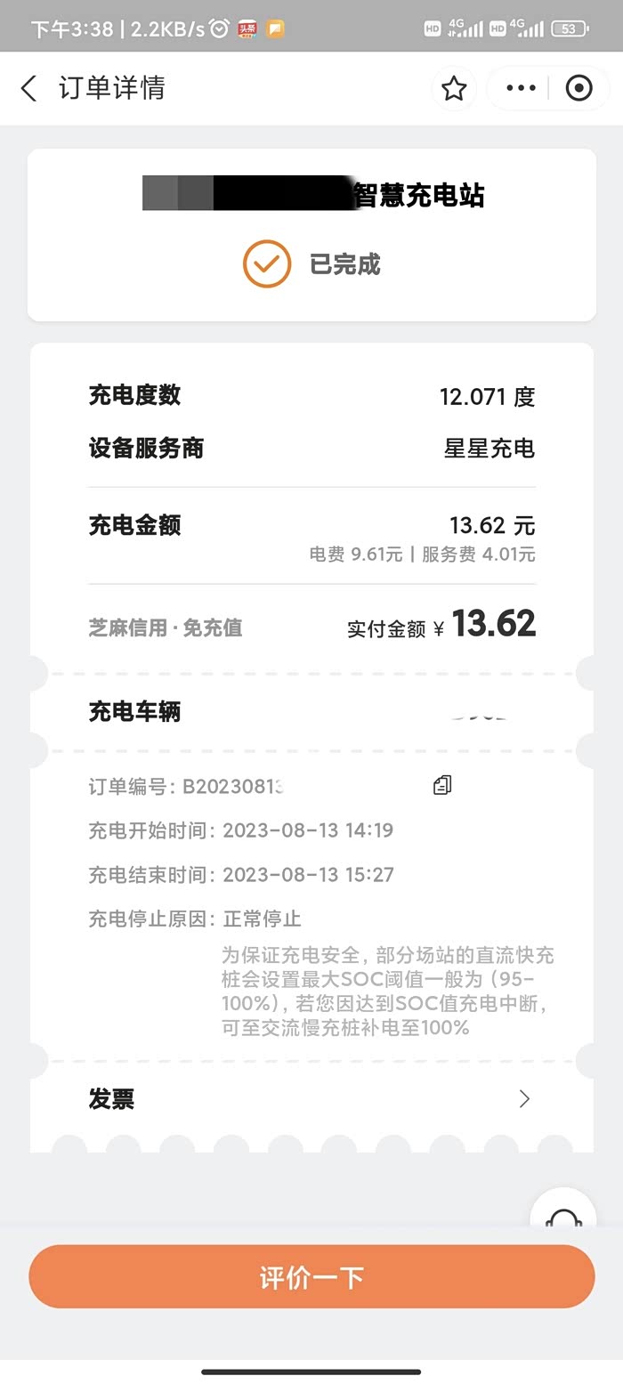 3.中途补电,充电72分钟(自动断电),充电12.071度。可用公里数显示198。