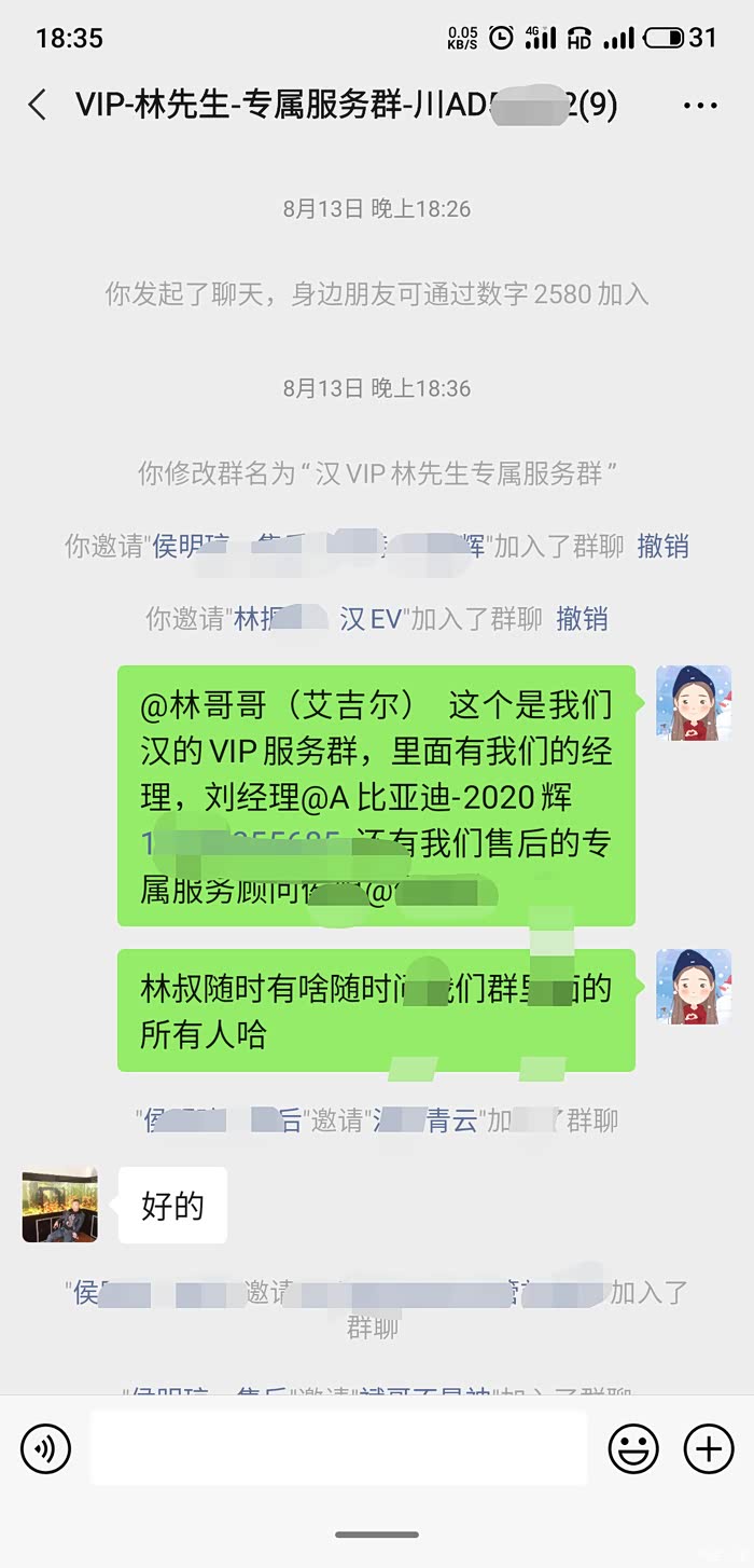 还专门建了一个VIP群,说有什么可以随时在群里面问,有他们店的售前售后经理,销售顾问,技术经理等等人员,这也是一个大的提升嘛