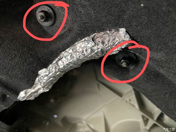 拆下2颗螺丝帽,把隔音垫塞进去,尽量让内衬多压住隔音垫一点,螺丝可以直接刺穿隔音垫,不用担心,所以尽量多压一些,这样就不会有泥水被轮胎甩进去了