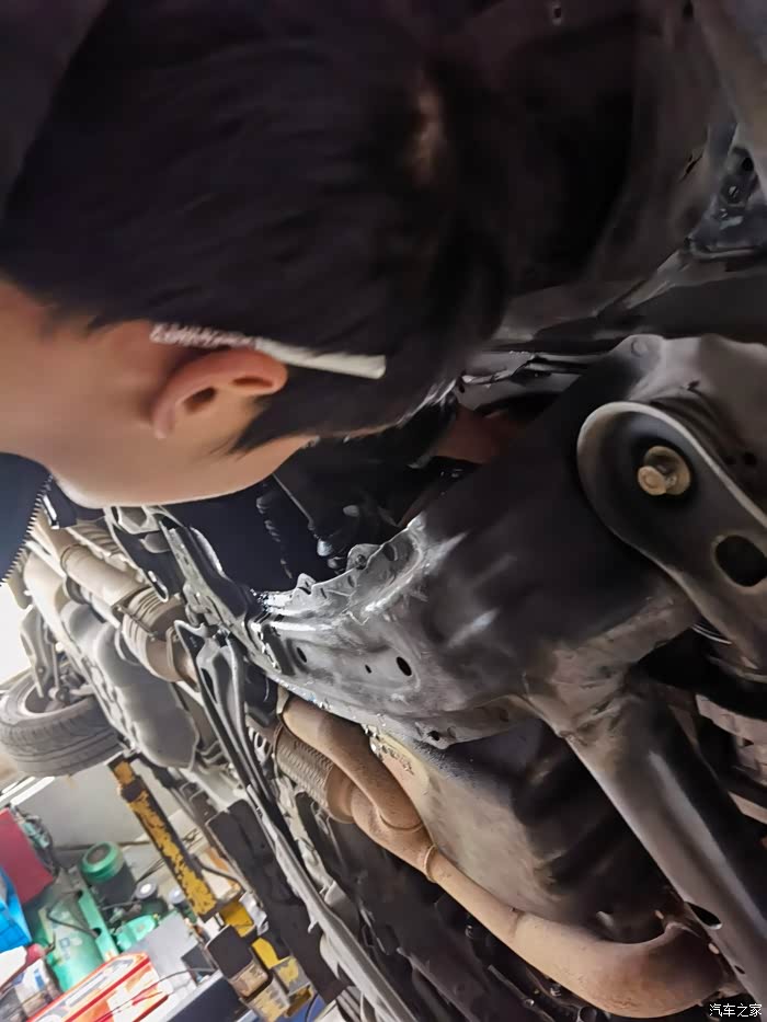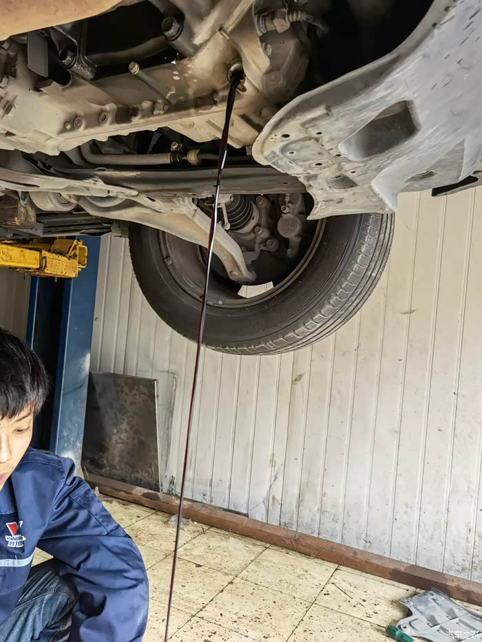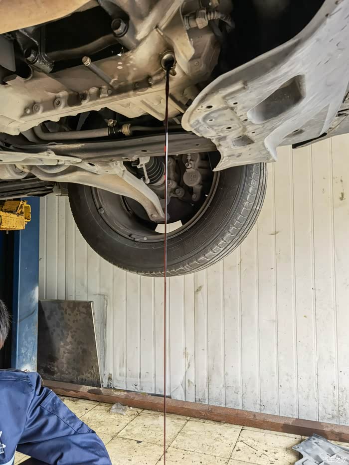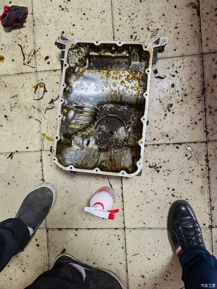 修车的陈老板亲自给冲洗机舱底盘的油泥,(原助力泵漏油、机油格处漏油,发动机放油口螺栓渗油,变速箱轻微渗油估计10年的车了 油封老化 后期观察若渗的厉害在换油封。)