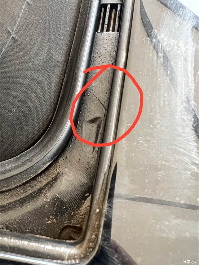 上图中的是天窗框架裂了,左右同样位置,一模一样的裂痕,这款天窗应该有2层结构,大众同样天窗的车如零度,CC,不知道各位车友的车漏水了吗?