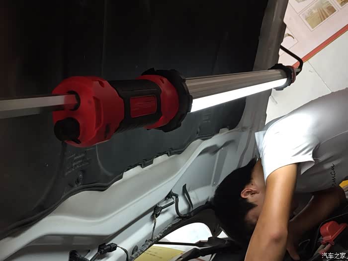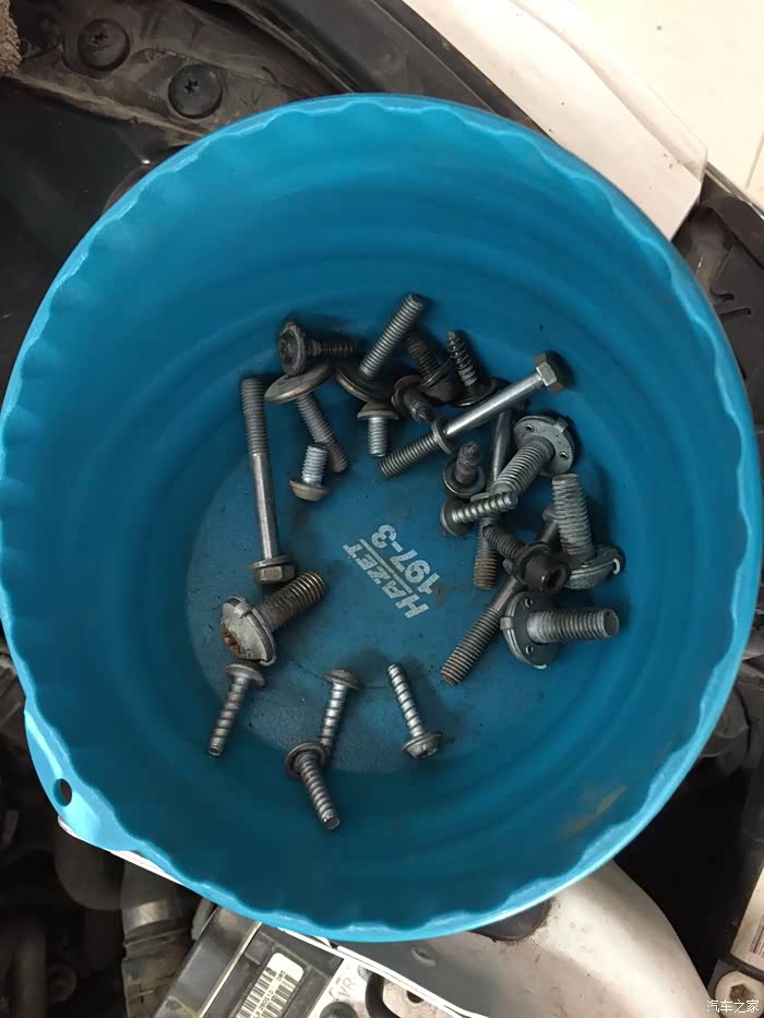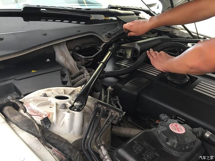 发动机罩拆下来了,加机油漏的机油,稍后清洗