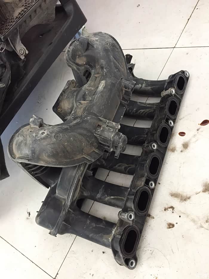 进气歧管里面太脏了,地上的油泥就是在管道里流出来的