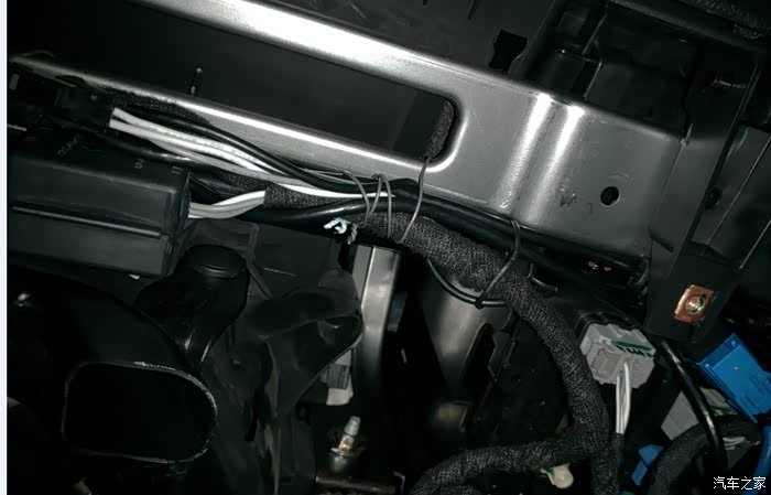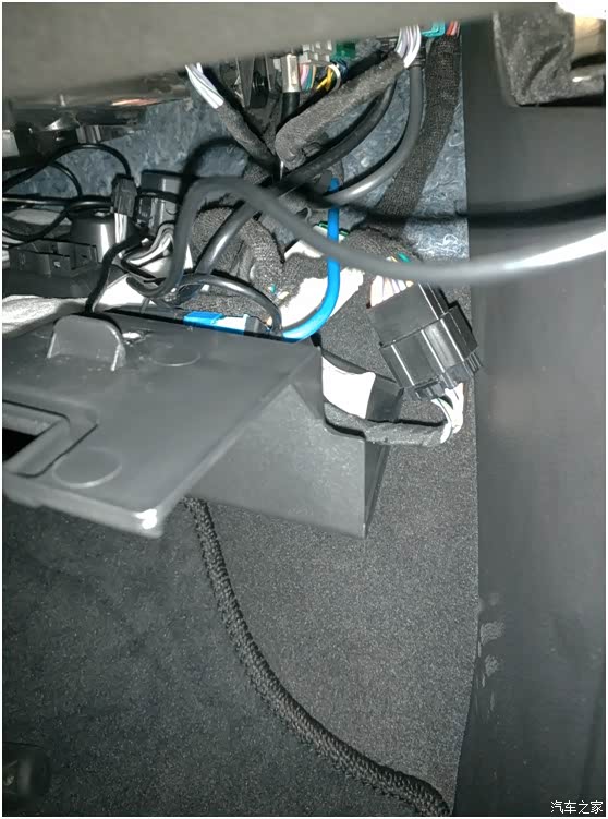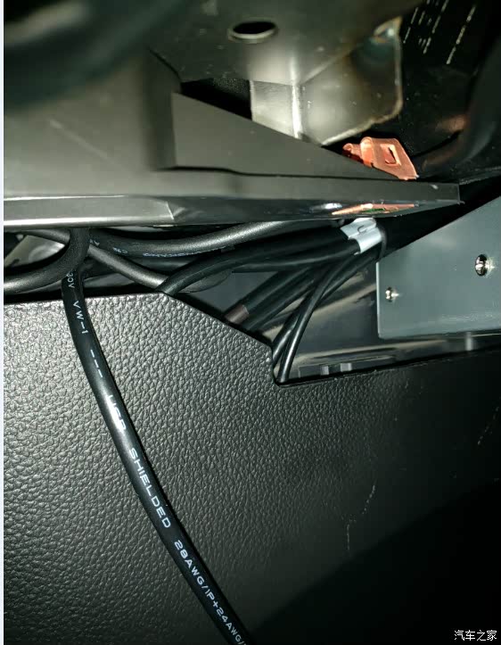 新更新图片,今天重新进行了内部走线。使用带绝缘的铁丝,可以将杂乱的线缠在手套箱下面的一个镂空的横梁上,线就不乱了。