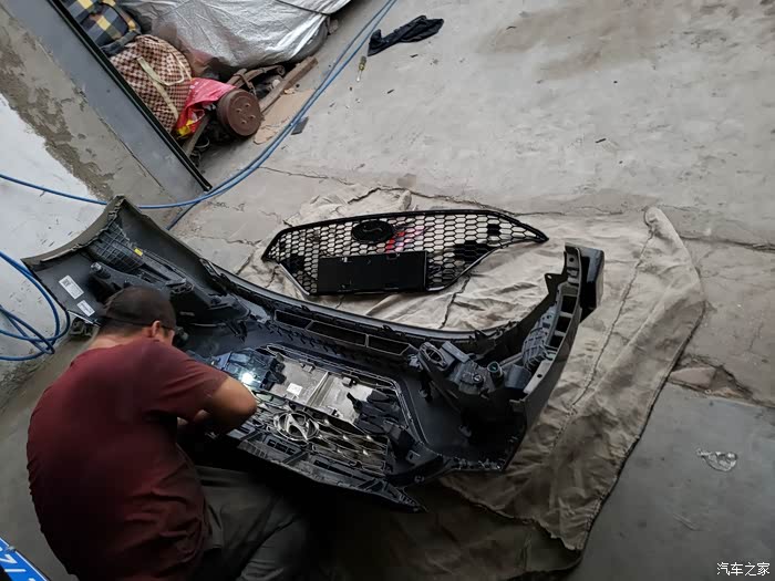 拆下前杠换中网
