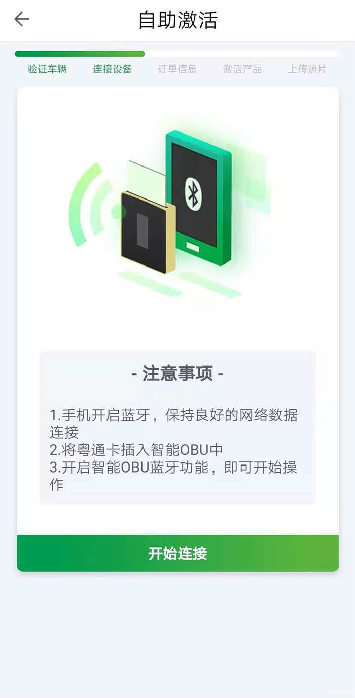 点击“开始链接”,如果不成功的请继续重复点击,实在不行的请重新按一下OBU的蓝牙开关