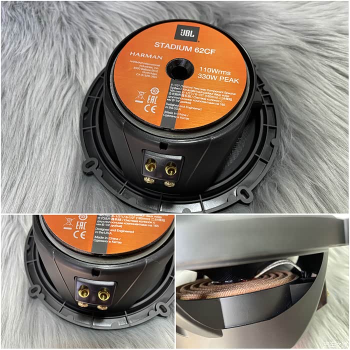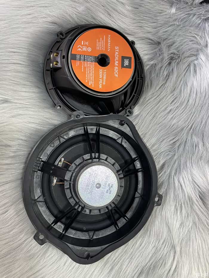 另一个就是喇叭的音盆材质不一样,JBL是玻璃纤维音盆,原车是普通纸盆。