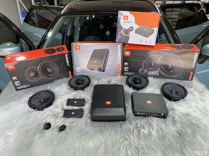 四门喇叭原先是JBL全新升级版的STADIUM系列,前门JBL STADIUM62CF二分频套装,后门JBL STADIUM62F同轴喇叭(不过后来在店里跟改装师傅沟通后,将后门的同轴也换成了一个二分频套装喇叭!),再搭配上JBL BASSPRO NANO超薄车载低音炮和JBL DA460DSP,完美。