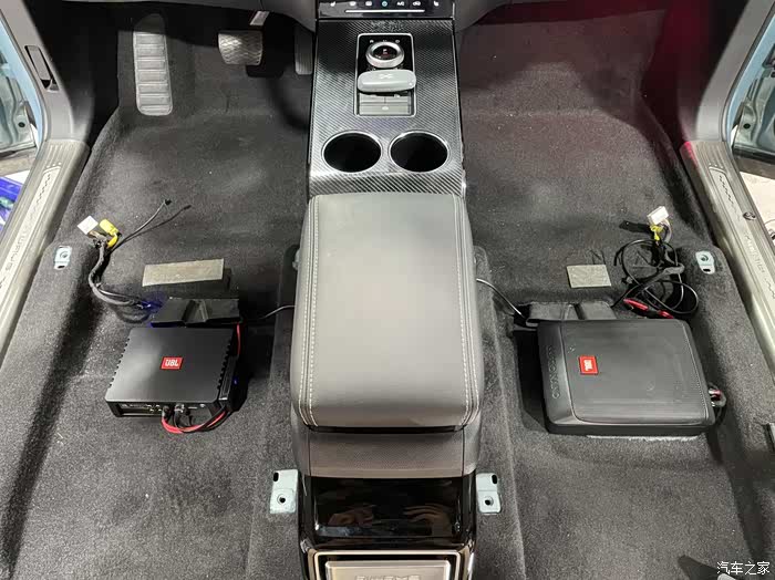 DSP和低音炮安装在前排座位下面,我的座位都是电动调节,底下的空间其实并不宽敞,不过好在这款DSP和低音炮的体积都非常纤薄,这么小的空间也没有问题。