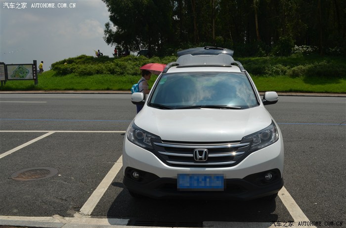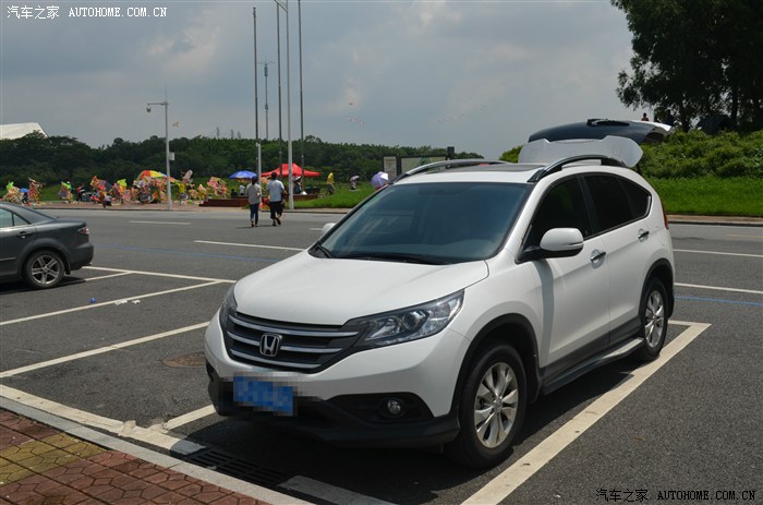 第一次试驾它是我上班时间溜出去的,销售很热情,当时旁边还看到杰德,本来想试驾它一起,后来放弃了。第一次试驾crv的感觉其实不好,销售拿了一辆2年左右的试驾车,车的各个方面都不是很好,当时有点气馁,回来跟老婆说不考虑它了的,而且优惠幅度才8000现金。后来销售打电话过来说周末有大优惠,叫我和老婆一起过去,周末没事我们就过去了,结果说优惠幅度1万5现金,瞬间眼前一亮,又试驾了一次,这次感觉就很好,老婆坐后面也是给很高分数。随谈,逼销售再降价格,销售说价格真没优惠了,可以送东西,就送了尾翼,踏板,行李架+其他附送品等。上网一查,这个价格可以接受,就下单了。全部落地24万多点。因为钱不够就按揭了一部分,等待煎熬中,5月14日下午3点半提了车,销售各方面都很好,心情愉悦。下面是新车的热照: