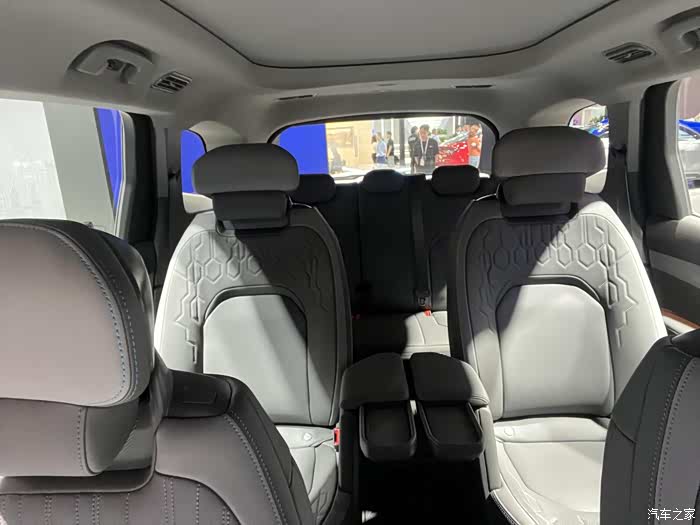 锐界L的空间确实让我俩挺惊喜的,简单说就一个宽敞。 2+2+3的布局明显方便得多,通道可以直接进第三排,乘坐的舒适感也特别强,我俩逛累了躺在上面几分钟,也感觉放松了很多。第二排的独立座椅配置还挺高,无线充、腿托、电动调节、通风加热都有,女儿还一阵规划调侃:要是买了开出去耍,这两个位置要留给我和妈哈。