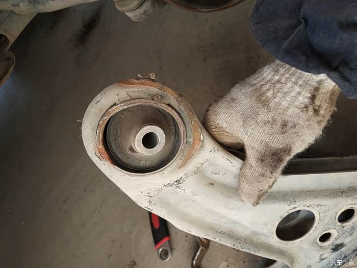 稍微烂点的路地盘咣啷咣啷的响 ,经过检查发现下支臂胶套脱出