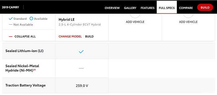 这是美规凯美瑞的混动顶配版XLE,使用镍氢电池