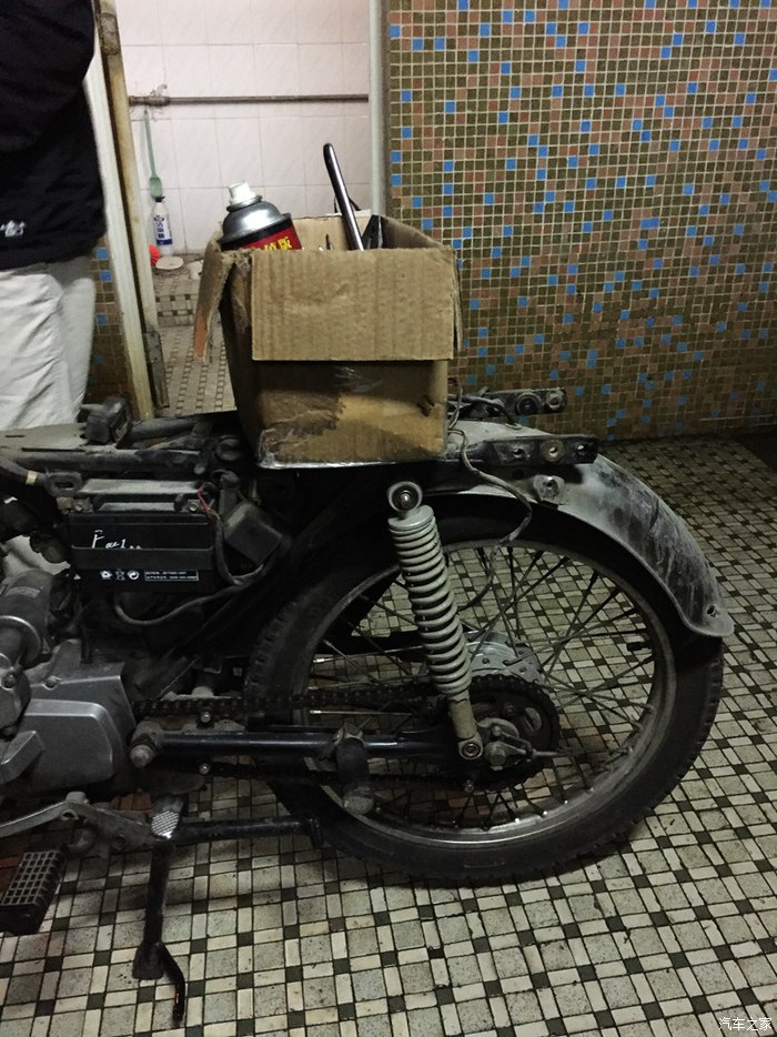 没打算改特别夸张的轮胎,所以前避震和三星就保留下来了,用电磨把表面的养护层磨掉