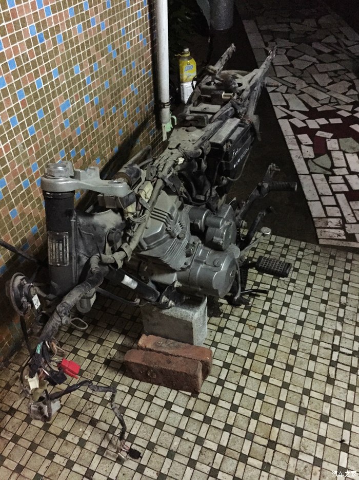 中间发生了不少插曲,因为我们都不是专业修摩托的,所以弄出很多笑话。例如连油箱底部的油量感应器都没装上我们就直接加油了,结果全部漏光。后来就抱着油箱到外面的摩托修理店去配,差点没把人家笑死。