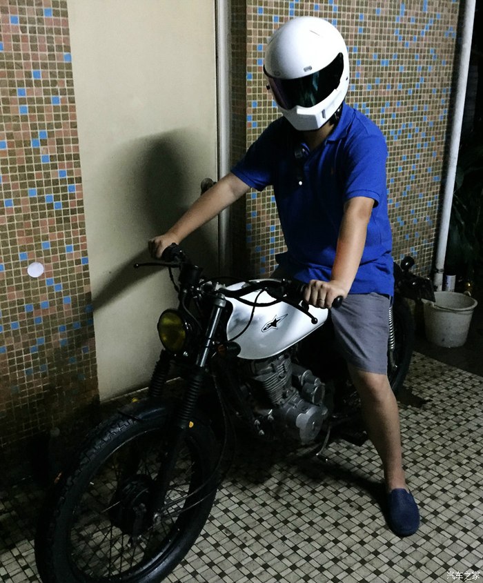 车子弄得差不多了,这是我第一次骑上这台车子,网上买的头盔也到货了。