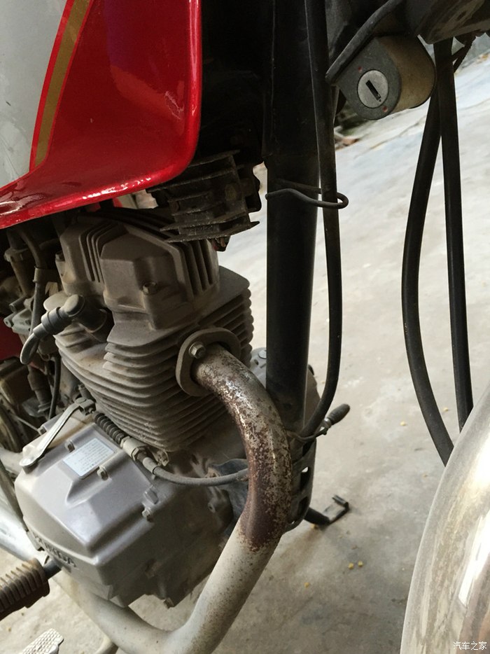 只跑了两千公里的机头,一踩就着火,挺精神的,上一次换机油什么时候已经记不清了,排气管生锈比较难看。