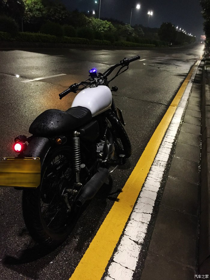 这是车子弄好的头一天晚上,虽然天下着雨,但还是按捺不住兴奋,骑出去把油箱加满