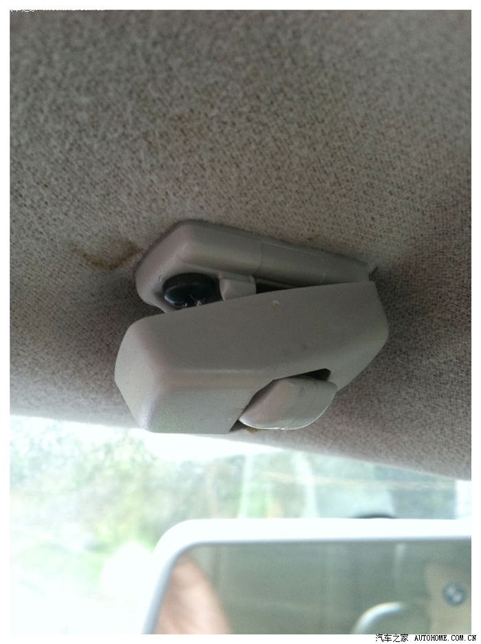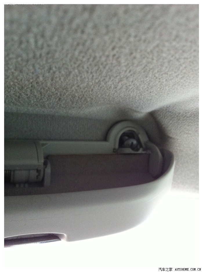 三,拆遮阳板另一端挂勾,外壳刀一字螺丝刀撬开,拧下二颗螺丝,轻松拆除。