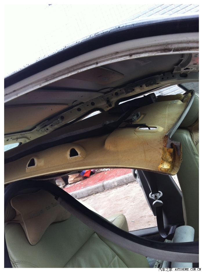 一切拆除完后顶棚基本就和车顶分开了。这个车门密封条是取下来后暂时按上去的。