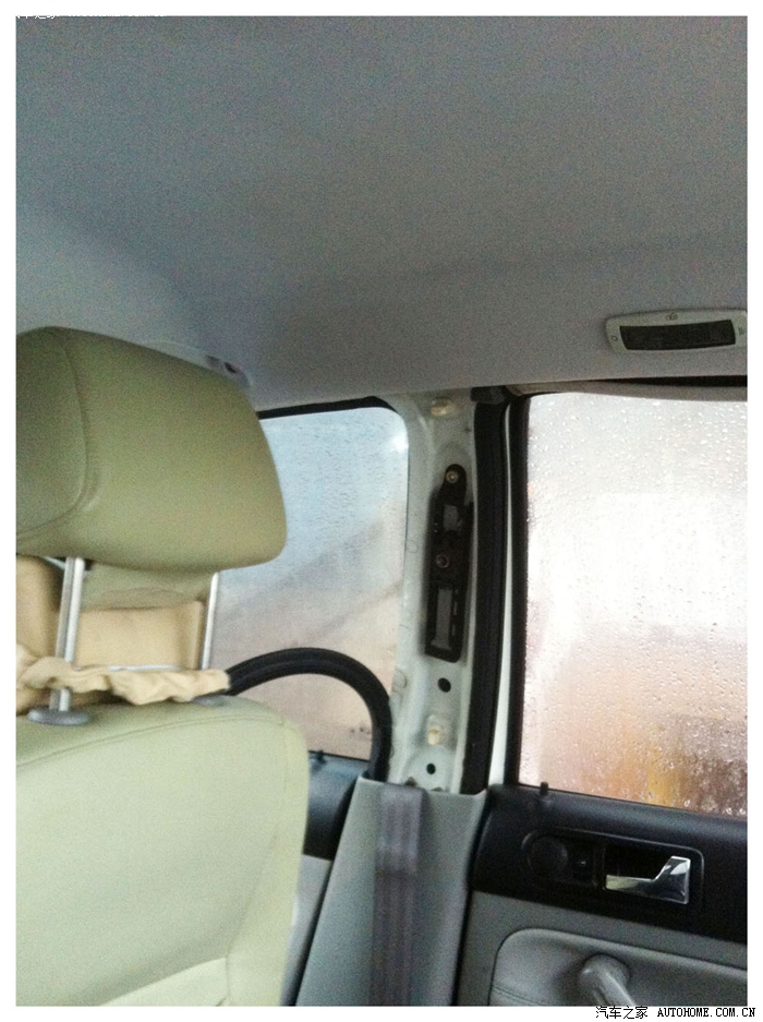 八,清洗顶棚,除胶,原厂的顶棚采用环保树脂胶,用水就可以清除,这也是大众车顶棚普遍脱落的原因,平时用水清洗过顶棚,或用高泡清洗过都会令原顶棚胶失去粘性导致顶棚布脱落。