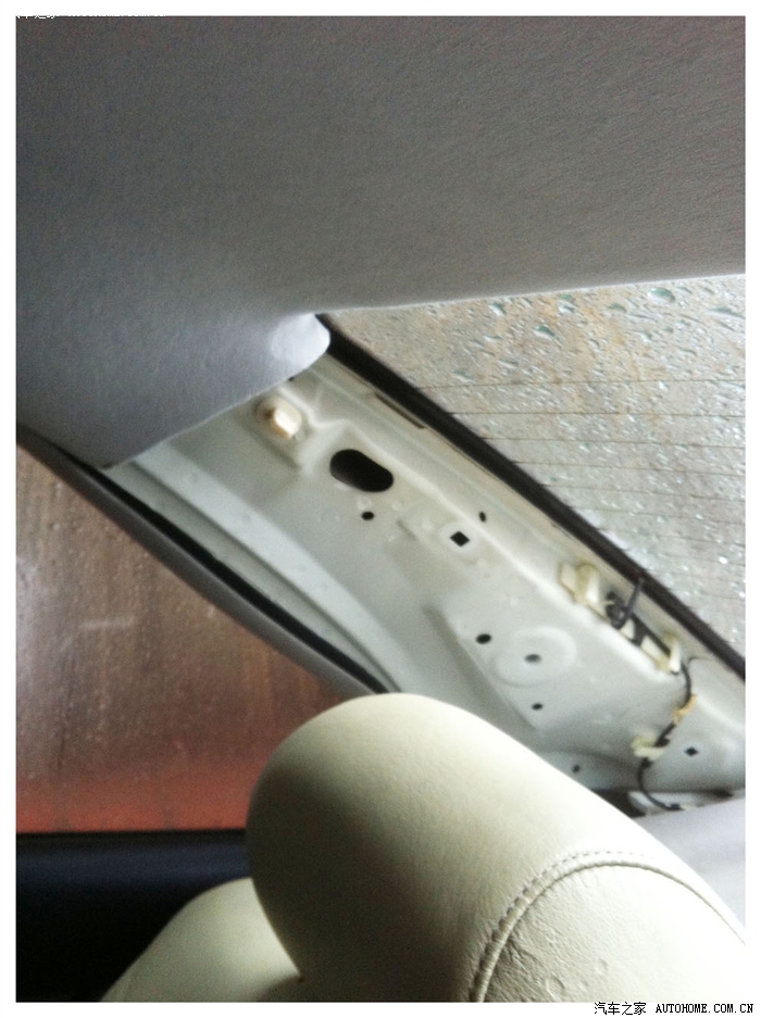 注意,左边A柱拆除后,有一条顶棚的电源线,拨下插头,沿玻璃从卡子中取出电线,电线是连着顶棚的。