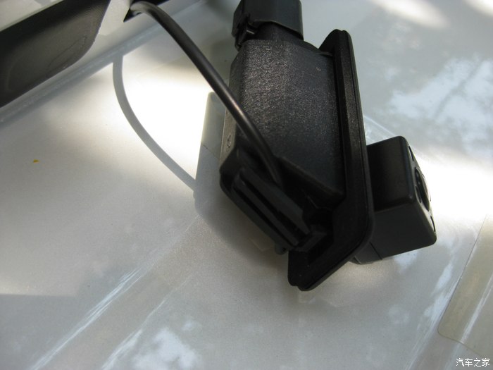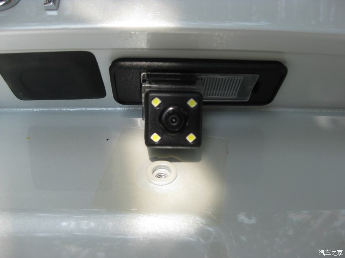 装好倒车摄像头的效果图。(后来因为上牌照的时候影响上螺丝,被我改到左边牌照灯位置了)