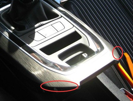 开始拆手套箱布置走线。手套箱内部上方有4个螺丝,外面底部有2个螺丝。侧面板直接撬就可以了。