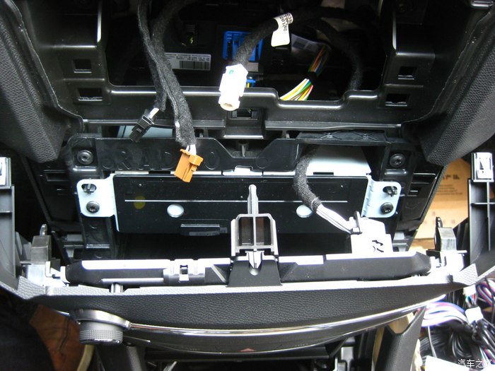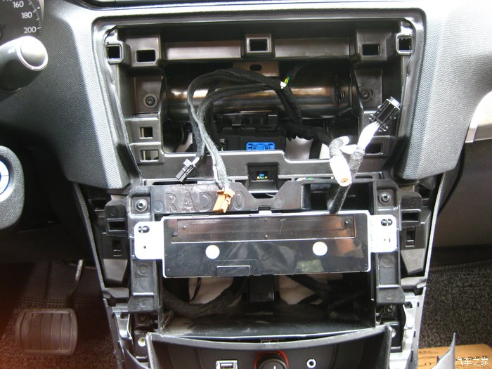 拆下中控音量调节面板,里面是收音和功放模块。下面那个空隙就是我放导航模块的地方。最后有完工效果图。