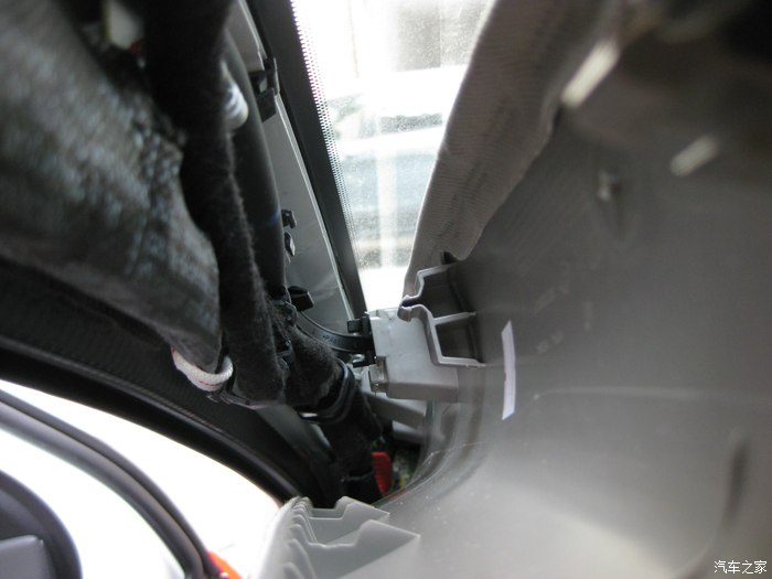 撬开左边A柱装饰板,注意卡扣方向,拆的时候向右边用力,不要向车尾方向。