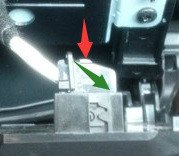 注意这个插头,我当初也是费了好大劲才拆下来。要先压下红色的限位,然后再将竖起那个扣沿绿色顺时针翻90度就可以取下来。